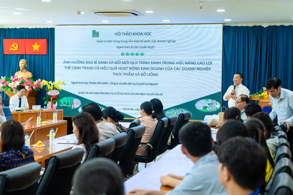 - “Ảnh hưởng của bao bì xanh và đổi mới quy trình xanh trong việc nâng cao lợi thế cạnh tranh và hiệu quả hoạt động kinh doanh của các doanh nghiệp thực phẩm và đồ uống”, do ông Phạm Văn Năm, đại diện từ Highland Coffee, trình bày. Bài tham luận này làm rõ cách thức các sáng kiến bao bì xanh và đổi mới quy trình có thể củng cố lợi thế cạnh tranh và hiệu quả hoạt động của các doanh nghiệp trong ngành thực phẩm và đồ uống.