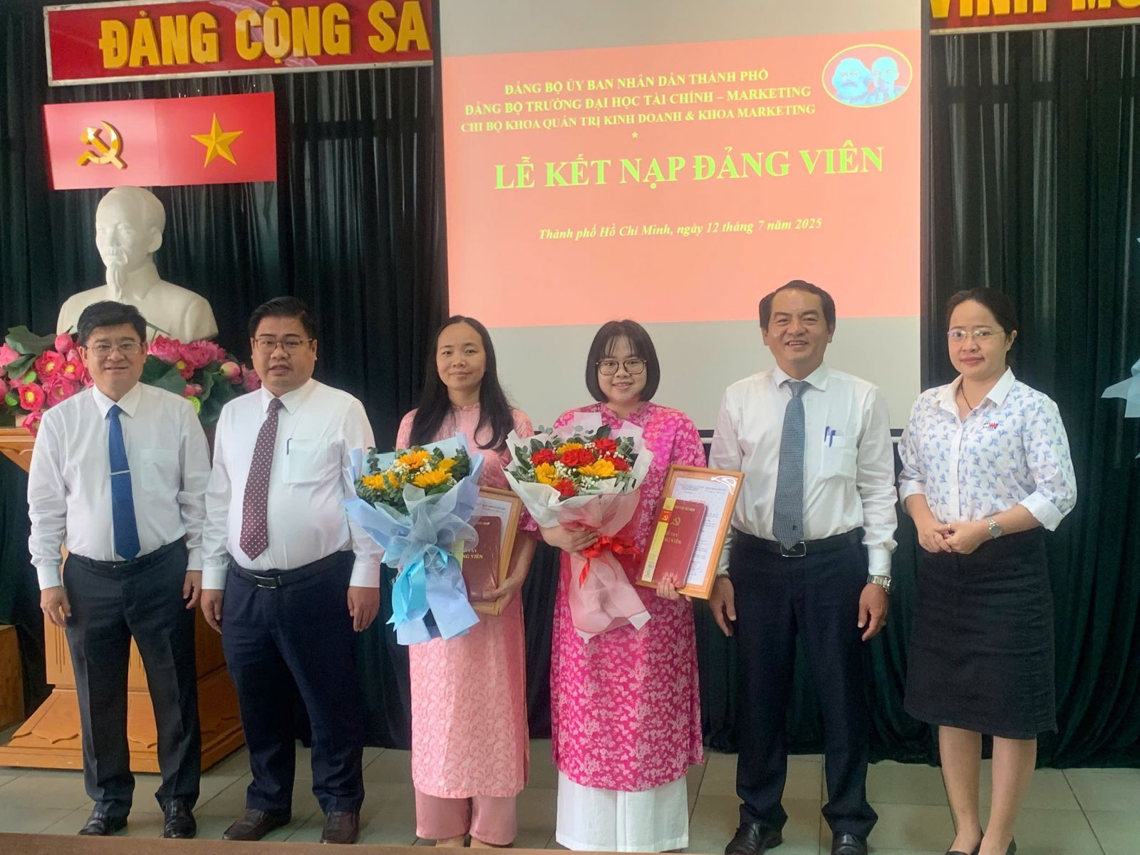 Trong năm 2025, Chi bộ Khoa Quản trị Kinh doanh và Khoa Marketing đã tổ chức Lễ kết nạp Đảng cho hai quần chúng ưu tú là TS. Dư Thị Chung – Phó Trưởng Bộ môn Cơ sở Marketing và ThS. Nguyễn Lê Xuân Thảo – Giảng viên Khoa Quản trị kinh doanh