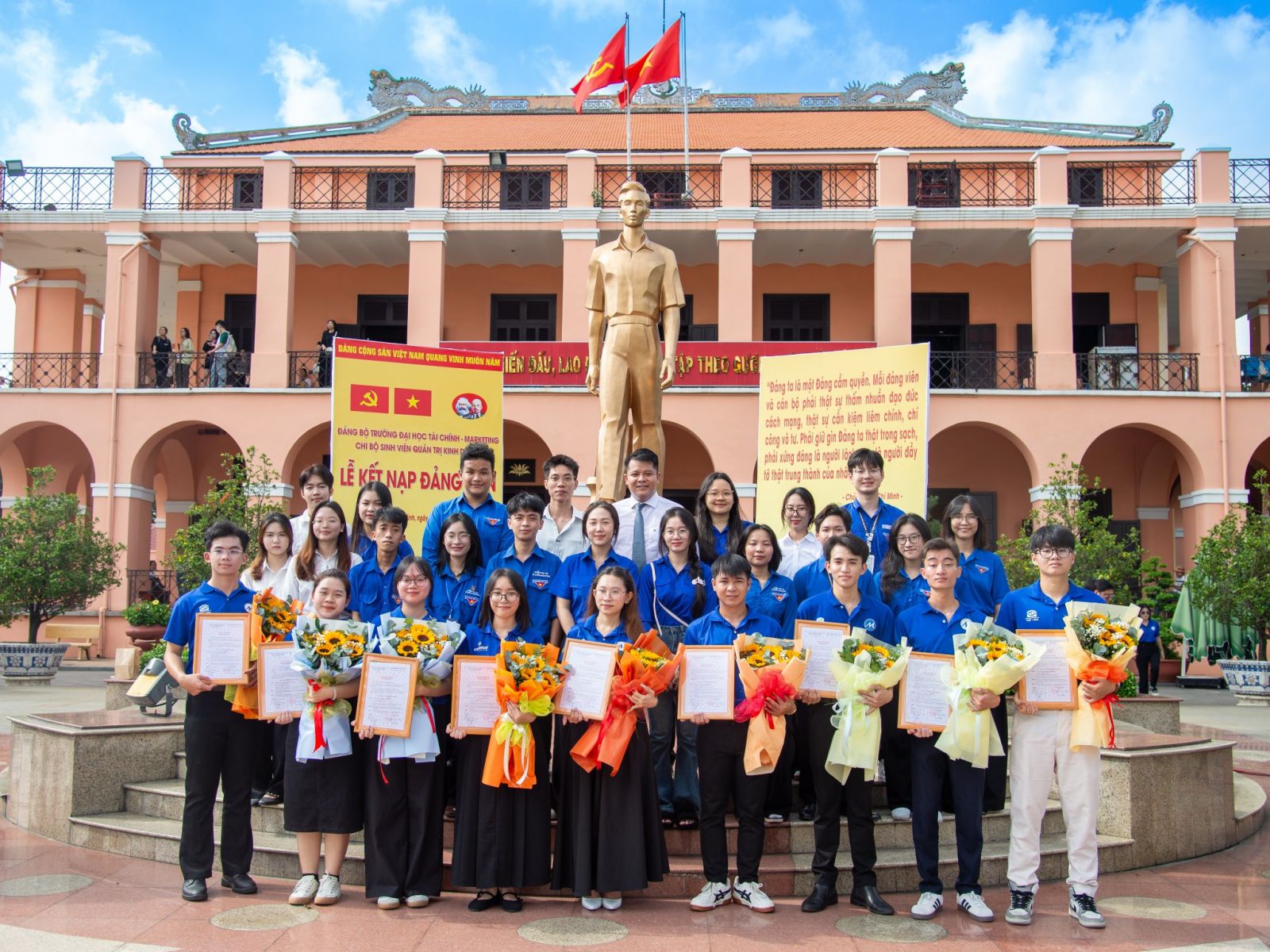Bên cạnh đó, vào ngày 02/08/2025, tại Bến Nhà Rồng, Chi bộ Sinh viên Khoa Quản trị Kinh doanh đã long trọng tổ chức Lễ kết nạp Đảng cho 09 quần chúng ưu tú, được phát triển từ những hạt giống đỏ, trưởng thành trong quá trình rèn luyện tại Khoa.