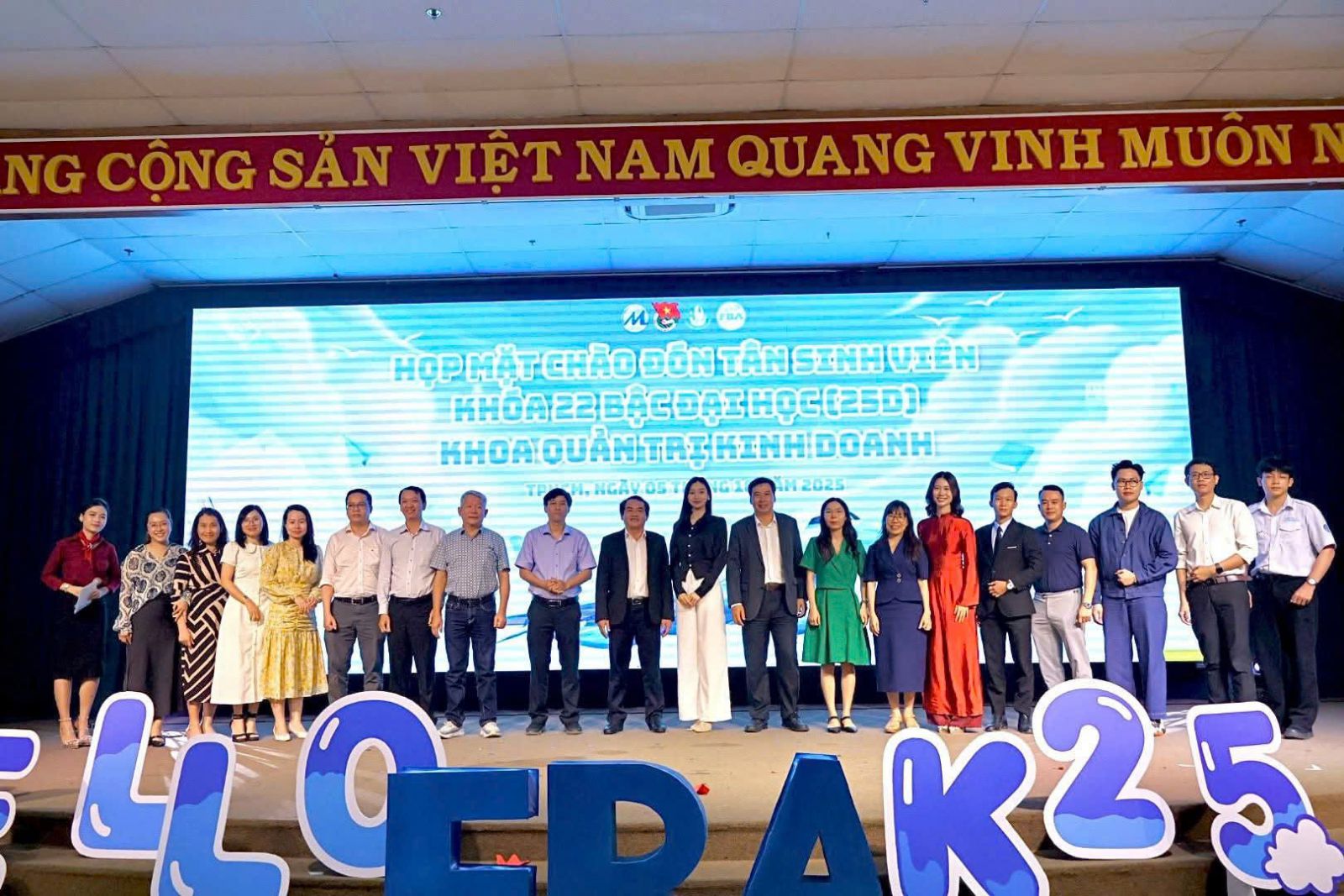 - Lễ chào đón Tân sinh viên Khóa 25D Khoa Quản trị kinh doanh – “Hello K25”: Chương trình được xây dựng như một cột mốc khởi đầu ý nghĩa, giúp các bạn Tân sinh viên Khóa 2025 nhanh chóng hòa nhập vào môi trường mới. Tại đây, những lời chia sẻ và định hướng từ Lãnh đạo Nhà trường cùng Khoa Quản trị Kinh doanh không chỉ cung cấp lộ trình học tập rõ ràng mà còn khơi dậy tinh thần cống hiến, tiếp thêm tự tin cho thế hệ sinh viên trẻ trên hành trình chinh phục tri thức.